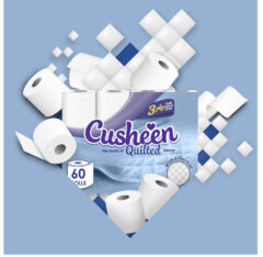 QUILTED TOUCH: You will love the quilted touch of Cusheen Luxury 3 Ply super-soft toilet tissues. (Approx. sheet size: 105mm x 115mm) *