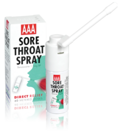 AAA Sore Throat Spray is the strongest benzocaine throat spray available. Each metered dose delivers 1.5mg of benzocaine to the sight of pain, avoiding the problem of numbing the whole mouth.