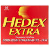 Hedex Extra Tablets are painkillers that have been specifically formulated to provide extra relief from discomfort caused by headaches and migraines. This product can also be used for fever, sore throat, aches and pains caused by cold and flu. The active ingredient in this product is paracetamol, which is a common pain killer and caffeine which helps to speed up the effects of paracetamol for quick and effective relief from pain.